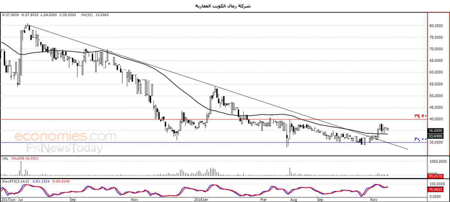 نطاق التداول المتوقع لهذا اليوم ما بين مستوى الدعم 30.00 ومستوى المقاومة 39.90 .