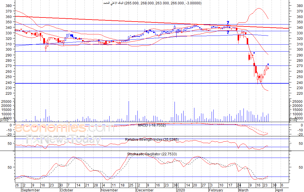 متوقع ان يكون النطاق السعري خلال اليوم الحالي بين مستوى الدعم هو 260 بينما مستوى المقاومة هو 268 فلس