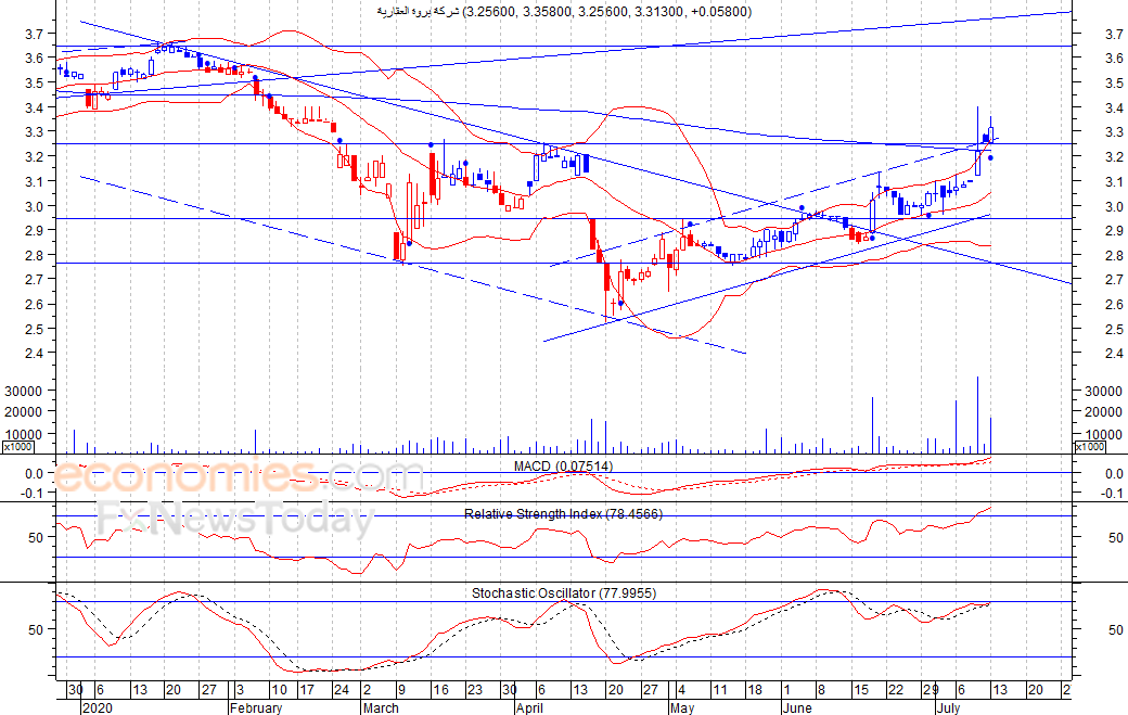 من المتوقع ان يكون النطاق السعري خلال جلسة اليوم بين مستوى الدعم وهو 3.26 وبين مستوى المقاومة هو 3.41 ريال