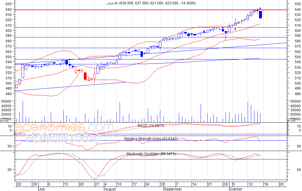 متوقع ان يكون النطاق السعري خلال اليوم الحالي بين مستوى الدعم هو 617.0 بينما مستوى المقاومة هو 633.0 فلس