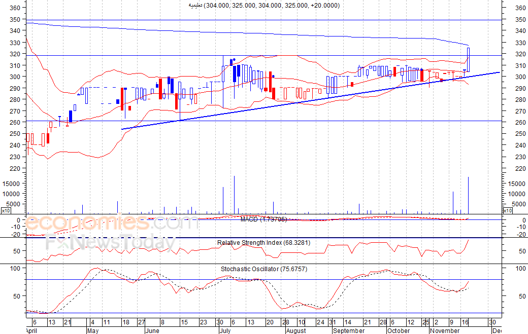 متوقع ان يكون النطاق السعري خلال اليوم الحالي بين مستوى الدعم هو 318 بينما مستوى المقاومة هو 332.0 فلس