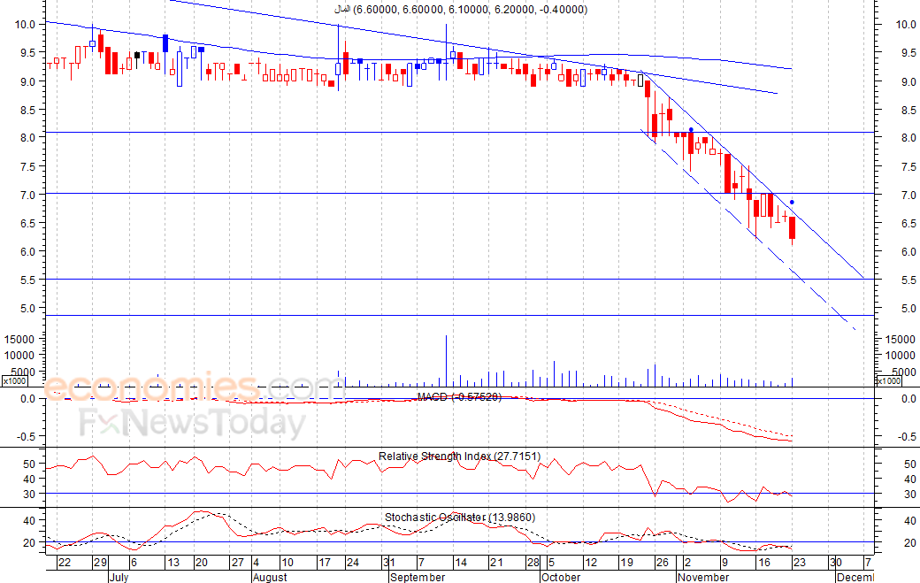 متوقع ان يكون النطاق السعري خلال اليوم الحالي بين مستوى الدعم هو 6.0 بينما مستوى المقاومة هو 6.5 فلس