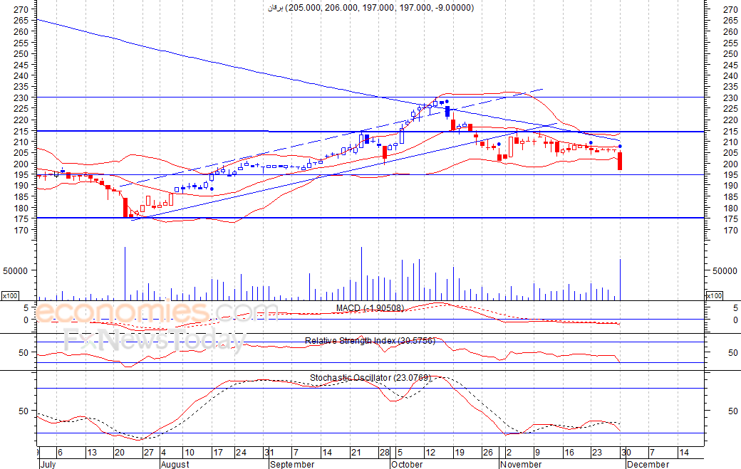 متوقع ان يكون النطاق السعري خلال اليوم الحالي بين مستوى الدعم هو 194.0 بينما مستوى المقاومة هو 203.0 فلس