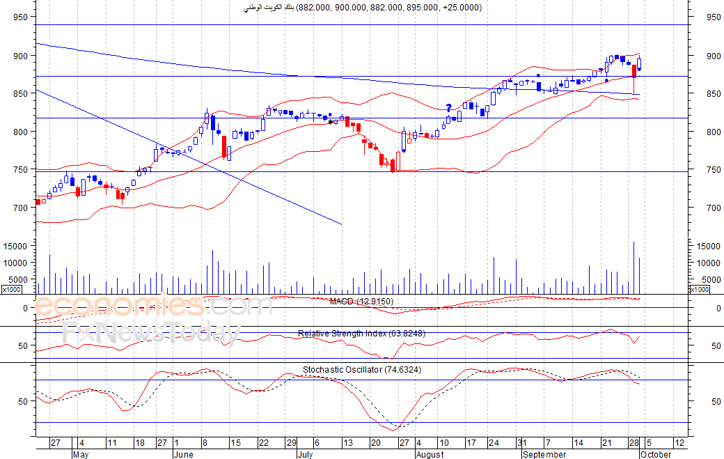 متوقع ان يكون النطاق السعري خلال اليوم الحالي بين مستوى الدعم هو 885 بينما مستوى المقاومة هو 905 فلس