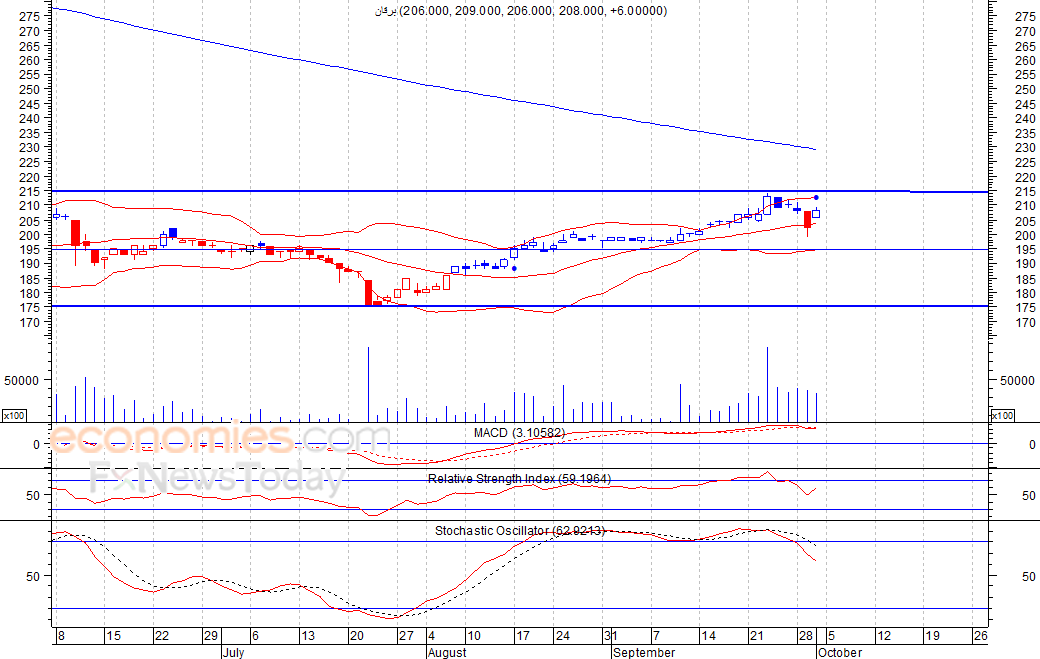 متوقع ان يكون النطاق السعري خلال اليوم الحالي بين مستوى الدعم هو 205 بينما مستوى المقاومة هو 209 فلس