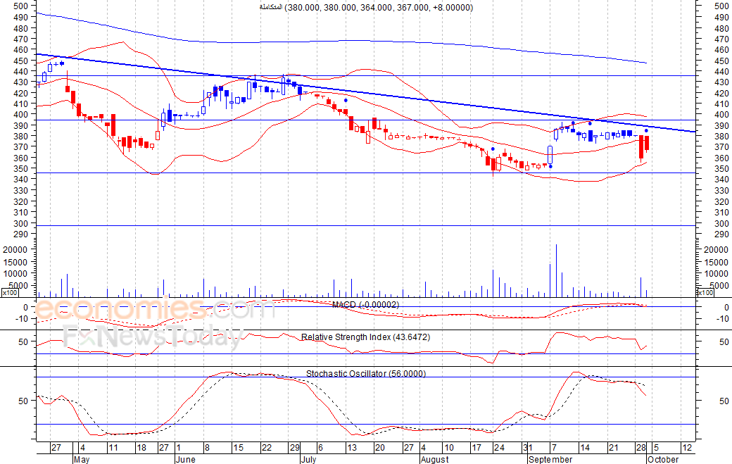 متوقع ان يكون النطاق السعري خلال اليوم الحالي بين مستوى الدعم هو 360.7 بينما مستوى المقاومة هو 376.7 فلس
