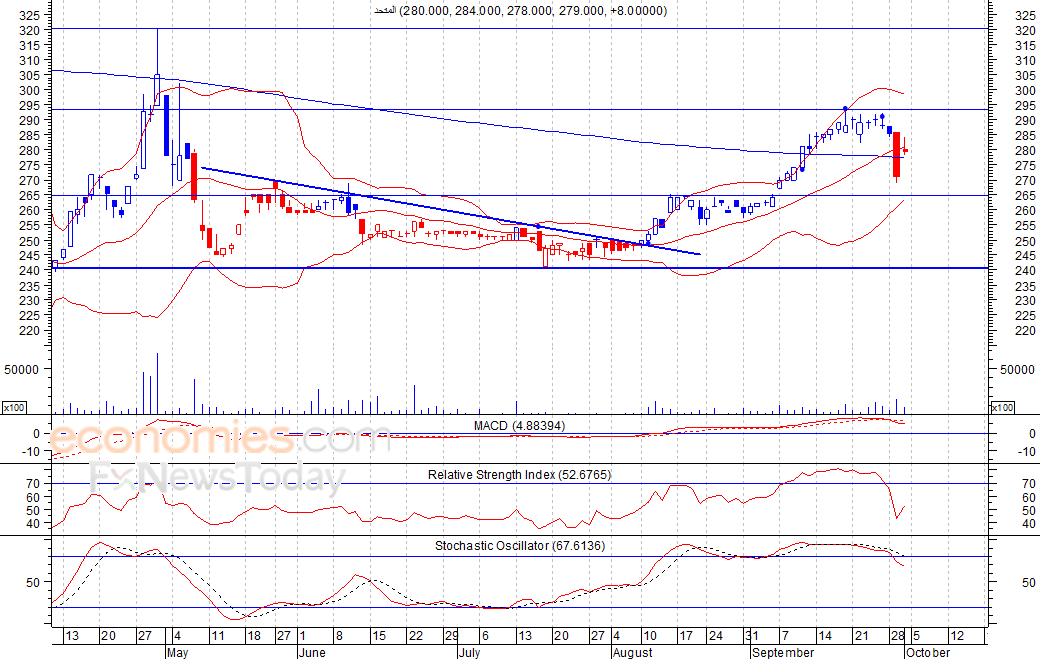متوقع ان يكون النطاق السعري خلال اليوم الحالي بين مستوى الدعم هو 275 بينما مستوى المقاومة هو 282 فلس