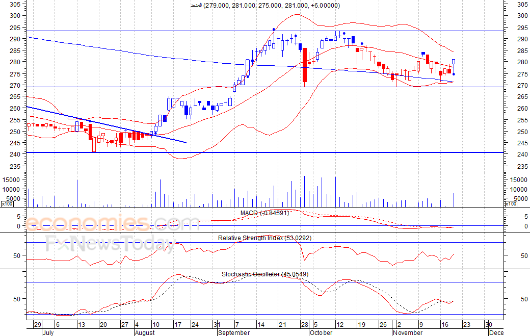 متوقع ان يكون النطاق السعري خلال اليوم الحالي بين مستوى الدعم هو 277.0 بينما مستوى المقاومة هو 283.0 فلس