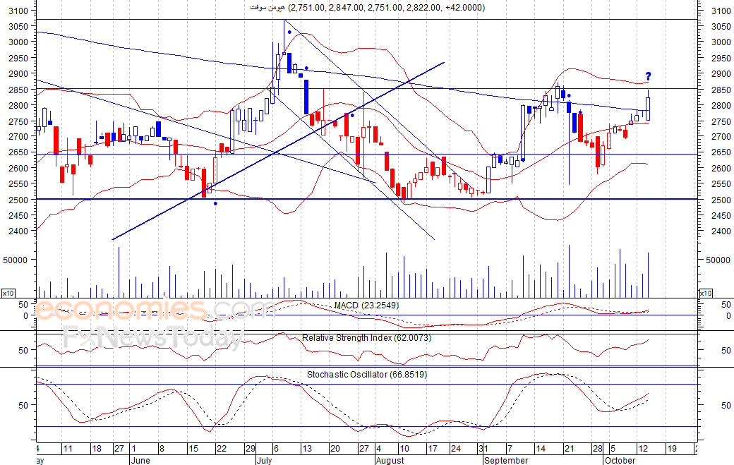 متوقع ان يكون النطاق السعري خلال اليوم الحالي بين مستوى الدعم هو 2,780 بينما مستوى المقاومة هو 2,870 فلس