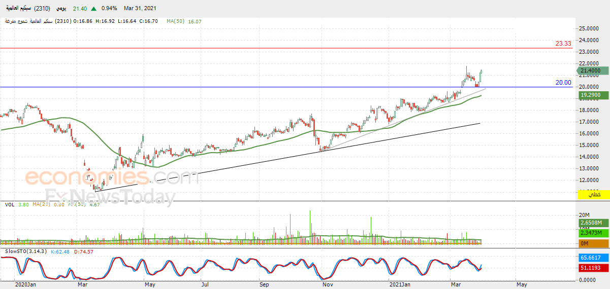 سبكيم العالمية وسط توقعات إيجابية – تحليل صباحي – 31-03-2021