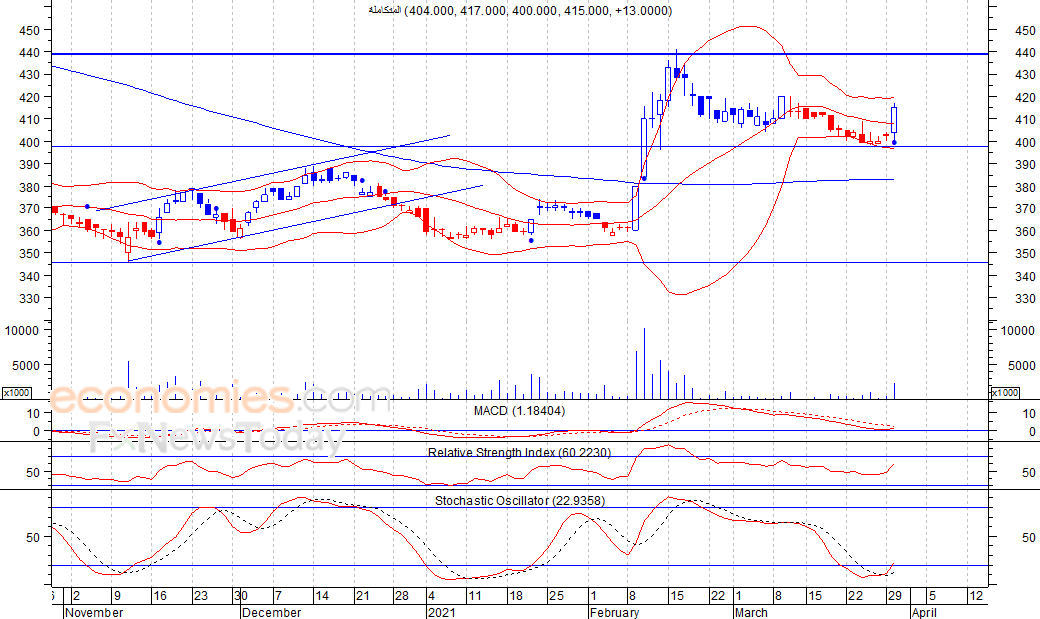 ومن المتوقع ان يكون النطاق السعري خلال جلسة اليوم بين مستوى الدعم وهو 404 وبين مستوى المقاومة هو 427 فلس