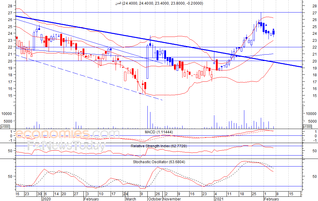 المدن (ALMUDON) يستهل الجلسة مرتفعا ويغلق منخفضا -تحليل صباحي- 08-02-2021