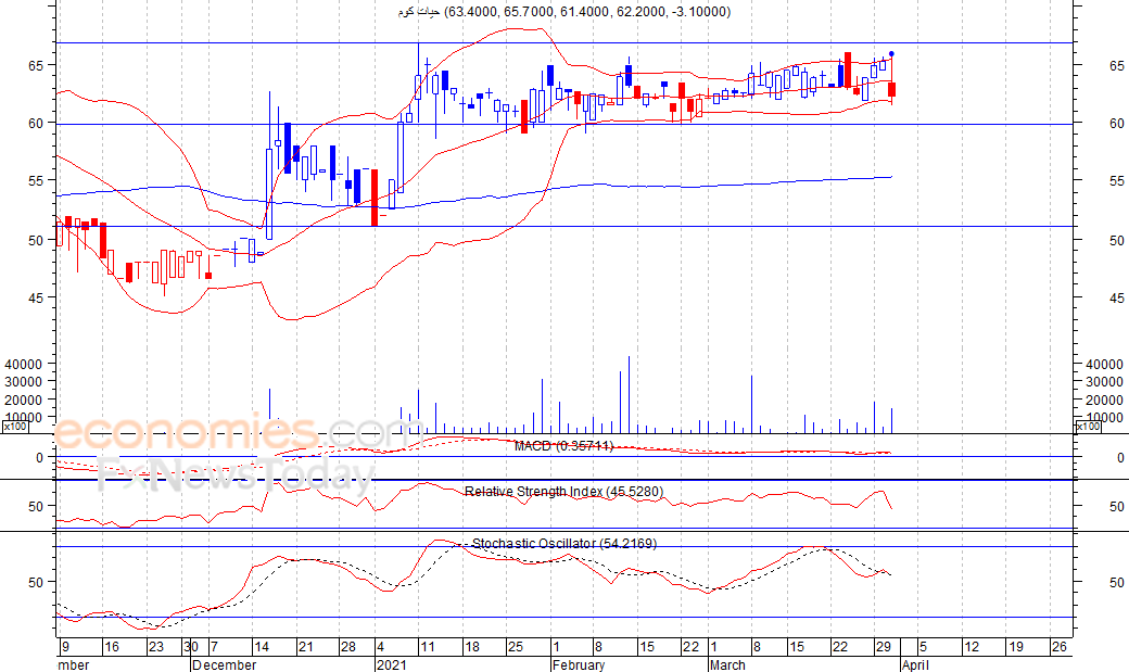ومن المتوقع ان يكون النطاق السعري خلال جلسة اليوم بين مستوى الدعم هو 60 فلس وبين مستوى المقاومة هو 64 فلس