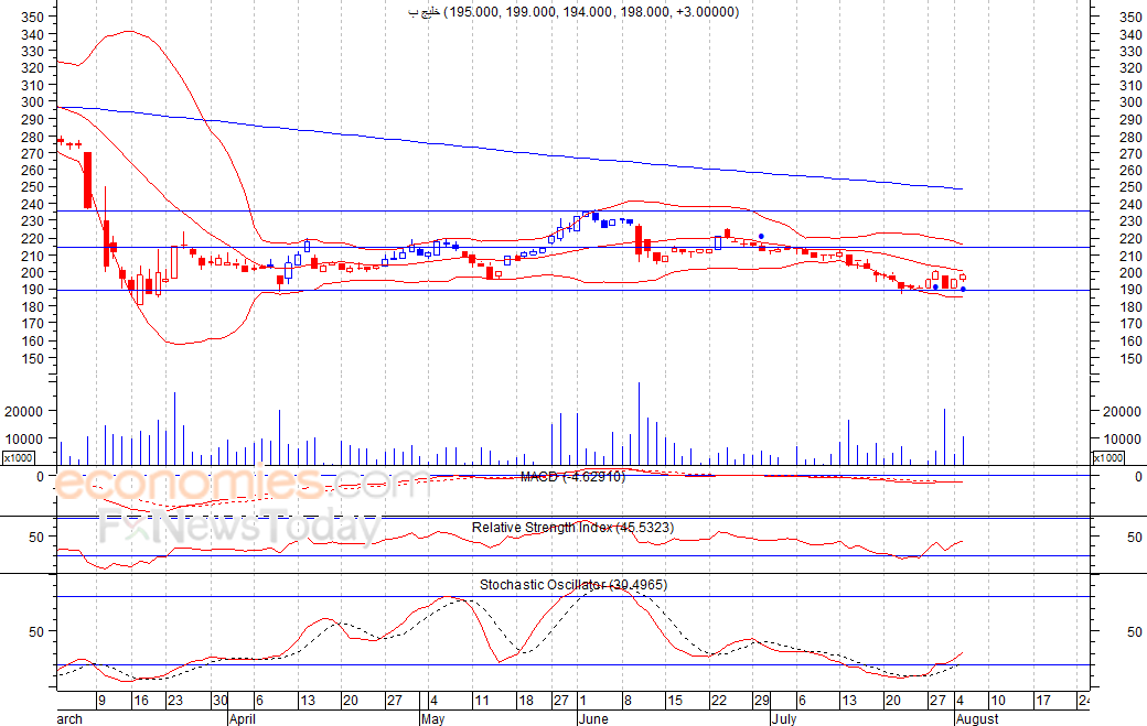 متوقع ان يكون النطاق السعري خلال اليوم الحالي بين مستوى الدعم هو 195.0 بينما مستوى المقاومة هو 200.0 فلس
