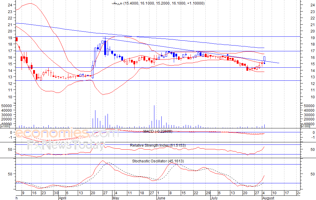متوقع ان يكون النطاق السعري خلال اليوم الحالي بين مستوى الدعم هو 15.5 بينما مستوى المقاومة هو 16.4 فلس