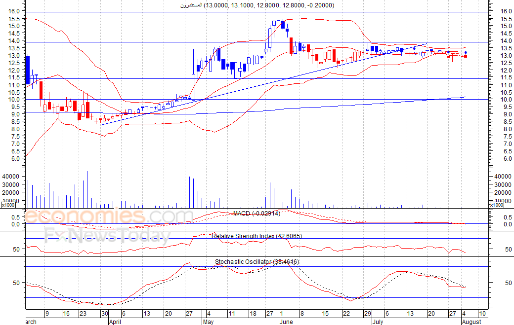 متوقع ان يكون النطاق السعري خلال اليوم الحالي بين مستوى الدعم هو 12.7 بينما مستوى المقاومة هو 13.0 فلس