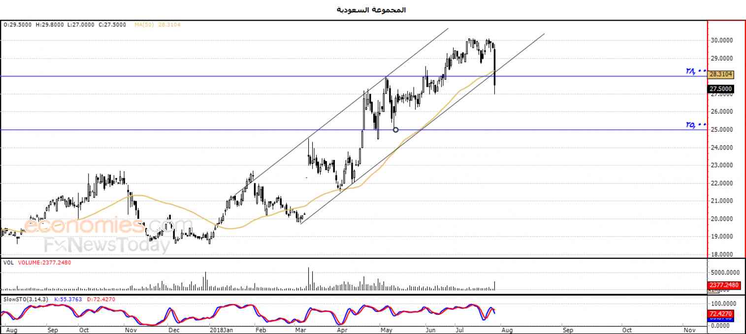 المجموعة السعودية يكسر دعم قناة سعريه صاعدة – تحليل صباحي – 30-07-2018