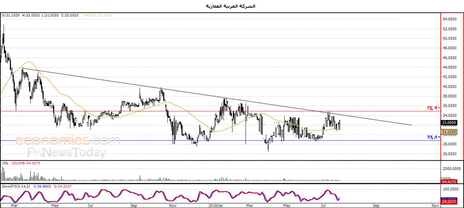 ولذلك نحن نرجح عودة انخفاض السهم خلال تداولاته القادمة ، ليستهدف مستوى الدعم المحوري 28.80 ، طيلة ثبات المقاومة 34.90 .
