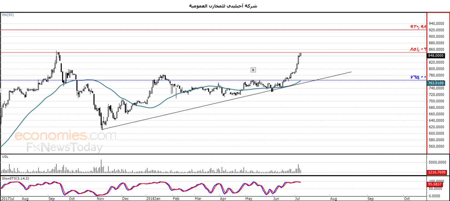 ولهذا تشير توقعاتنا إلى المزيد من الارتفاع للسهم خلال تداولاته القادمة ، خاصة في حالة اختراقه للمقاومة 851.06 ، ليستهدف بعدها مستوى المقاومة 920.98 .