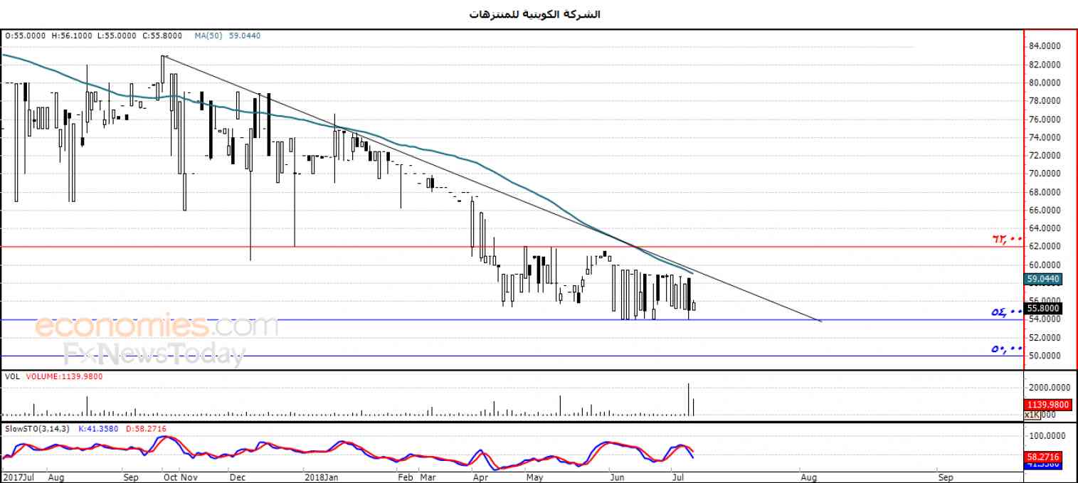 ولذلك نحن نرجح عودة انخفاض السهم خلال تداولاته القادمة ، خاصة في حالة كسره للدعم 54.00 ، ليستهدف بعدها مستوى الدعم 50.00 .