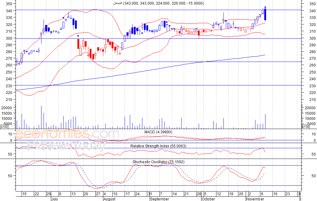 متوقع ان يكون النطاق السعري خلال اليوم الحالي بين مستوى الدعم هو 315 بينما مستوى المقاومة هو 330 فلس