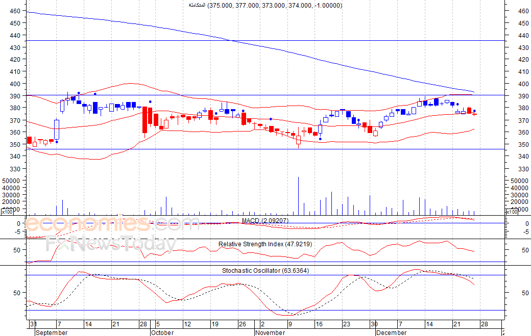 متوقع ان يكون النطاق السعري خلال اليوم الحالي بين مستوى الدعم هو 372.3 بينما مستوى المقاومة هو 376.3 فلس