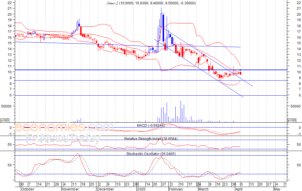 متوقع ان يكون النطاق السعري خلال اليوم الحالي بين مستوى الدعم هو 9.3 بينما مستوى المقاومة هو 9.9 فلس