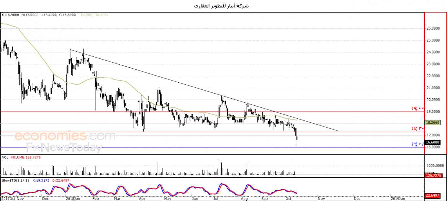 ولهذا نحن نتوقع المزيد من الانخفاض للسهم خلال تداولاته القادمة ، طيلة استقراره أدنى مستوى 17.30 ، ليستهدف بعدها مستوى الدعم 16.01 .