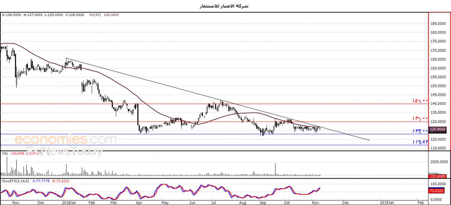 نطاق التداول المتوقع لهذا اليوم ما بين مستوى الدعم 123.00 المقاومة 130.00 .