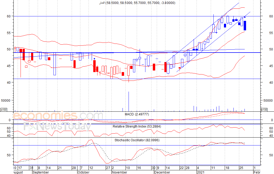 متوقع ان يكون النطاق السعري خلال اليوم الحالي بين مستوى الدعم هو 54.8 بينما مستوى المقاومة هو 56.6 فلس