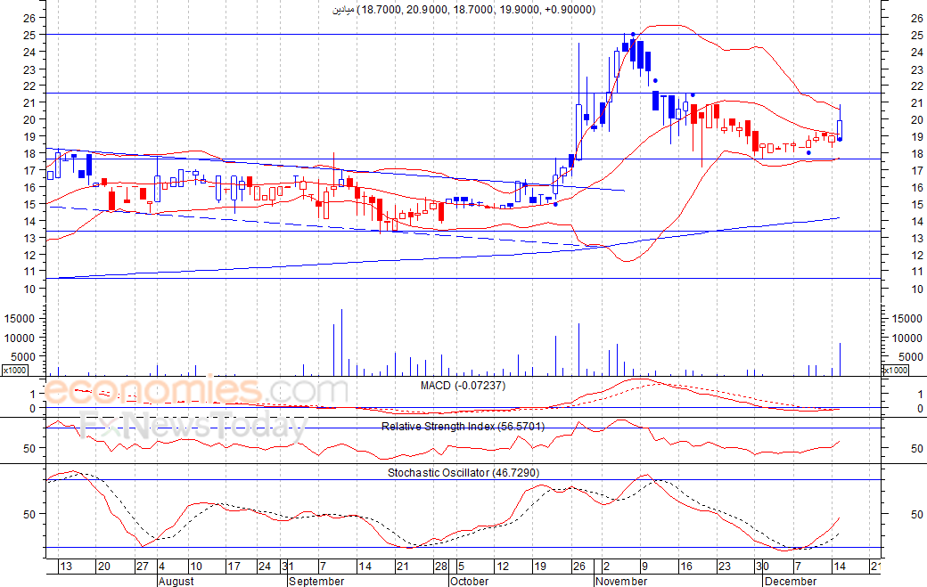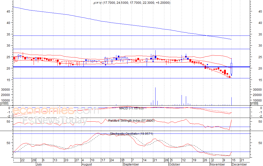 متوقع ان يكون النطاق السعري خلال اليوم الحالي بين مستوى الدعم هو 20٫50 بينما مستوى المقاومة هو 25.3 فلس
