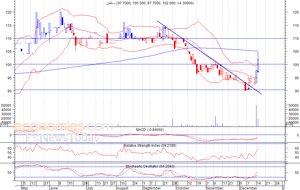 متوقع ان يكون النطاق السعري خلال اليوم الحالي بين مستوى الدعم هو 100 بينما مستوى المقاومة هو 106 فلس