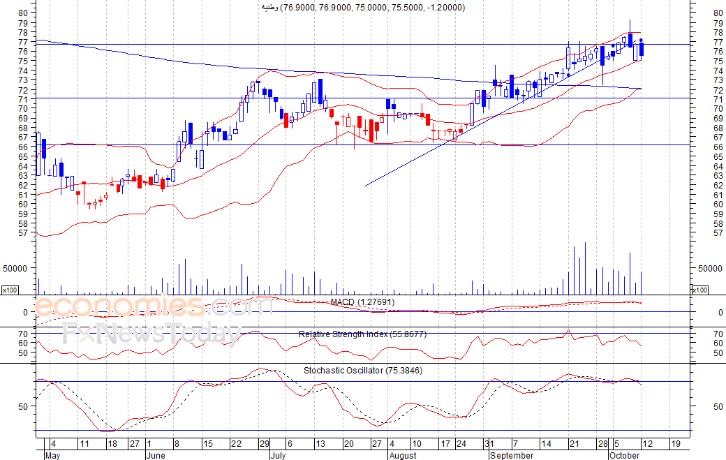 متوقع ان يكون النطاق السعري خلال اليوم الحالي بين مستوى الدعم هو 74.7 بينما مستوى المقاومة هو 76.6 فلس