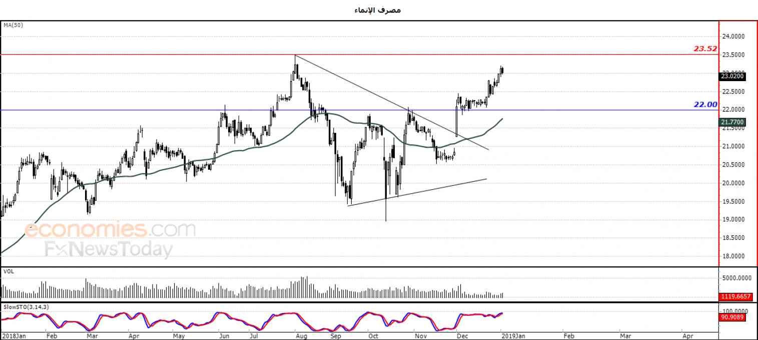 ولذلك نحن نرجح عودة ارتفاع السهم خلال تداولاته القادمة ، ليستهدف مستوى المقاومة المحوري 23.52 ، طيلة ثبات مستوى الدعم 22.50 .