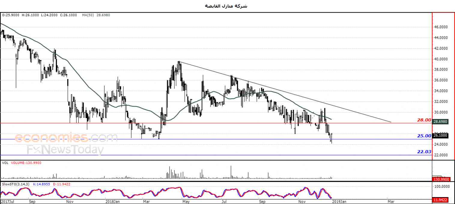 نطاق التداول المتوقع لهذا اليوم ما بين مستوى الدعم 24.00 ومستوى المقاومة 28.00 .