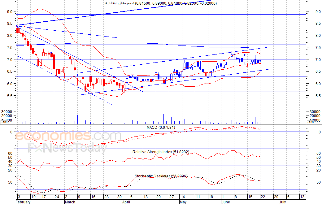 من المتوقع ان يكون النطاق السعري خلال جلسة اليوم بين مستوى الدعم وهو 6.70 وبين مستوى المقاومة هو 6.92 ريال