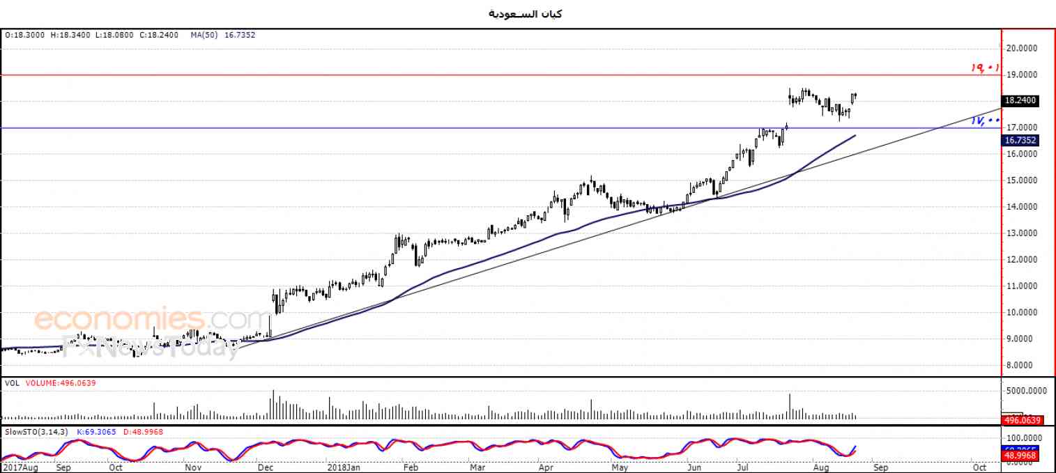 نطاق التداول المتوقع لهذا اليوم ما بين مستوى الدعم 17.26 ومستوى المقاومة 19.00 .