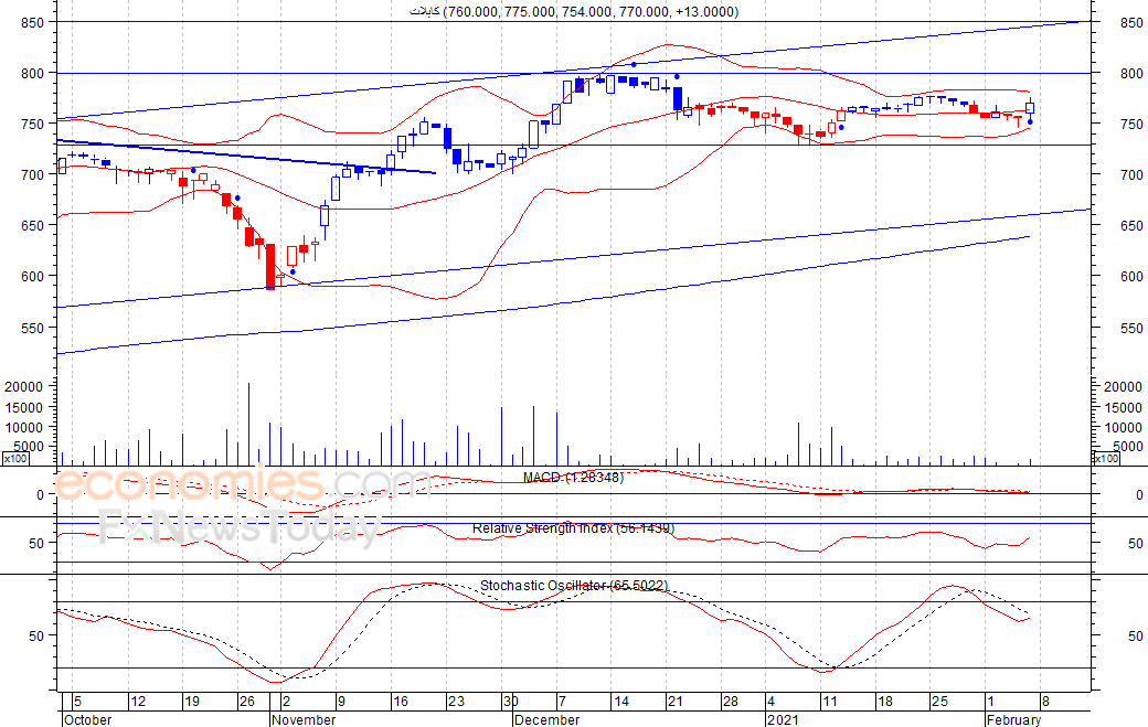 متوقع ان يكون النطاق السعري خلال اليوم الحالي بين مستوى الدعم هو 758 بينما مستوى المقاومة هو 790 فلس