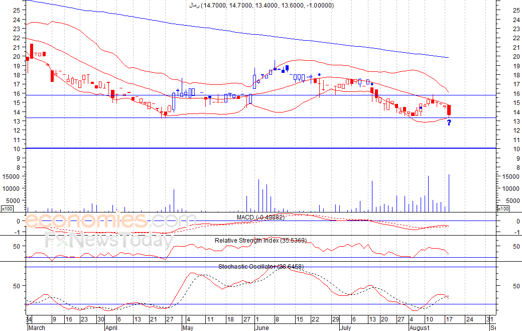 متوقع ان يكون النطاق السعري خلال اليوم الحالي بين مستوى الدعم هو 13.1 بينما مستوى المقاومة هو 14.4 فلس
