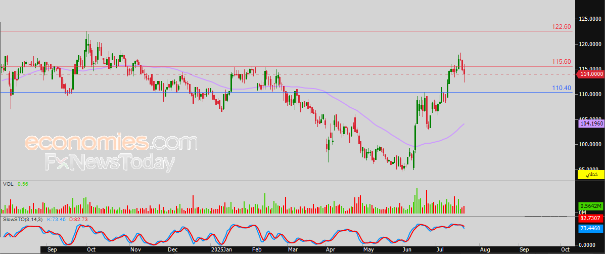 لهذا تشير توقعاتنا إلى صعود سعر السهم خلال تداولاته القادمة، خاصة في حالة اختراقه للمقاومة المذكورة 115.60 ريال، ليستهدف بعدها مستوى المقاومة المحوري 122.60 ريال.