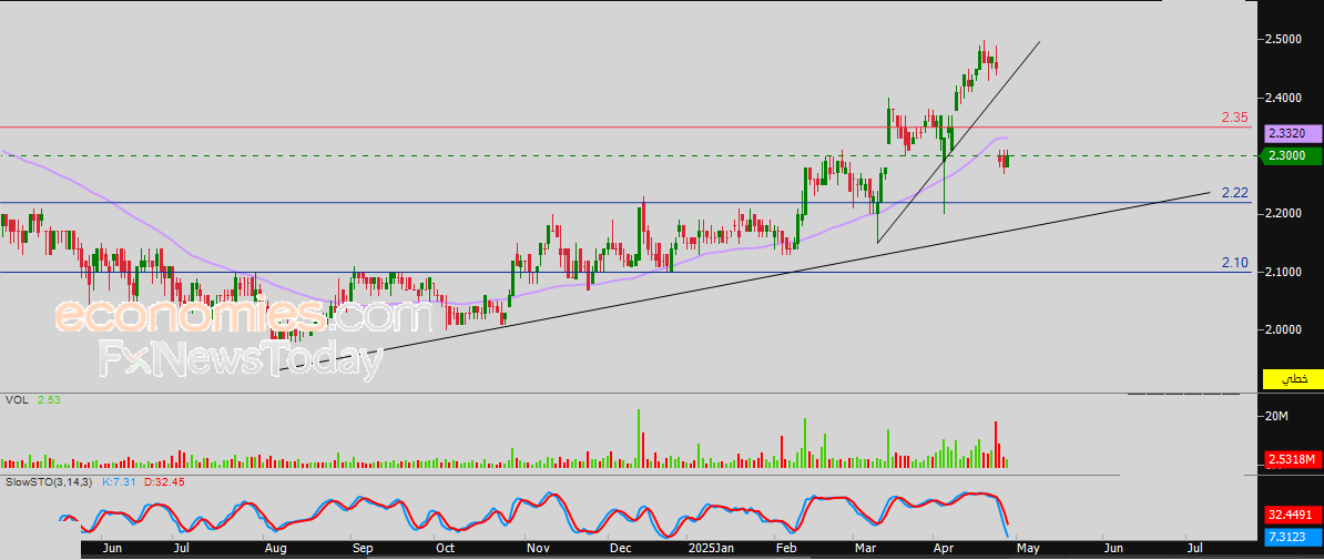 وعلى هذا الأساس فتوقعاتنا تشير إلى عودة هبوط سعر السهم خلال تداولاته القادمة، طيلة استقراره دون سعر 2.35 درهم، ليستهدف مستوى الدعم 2.22 درهم.