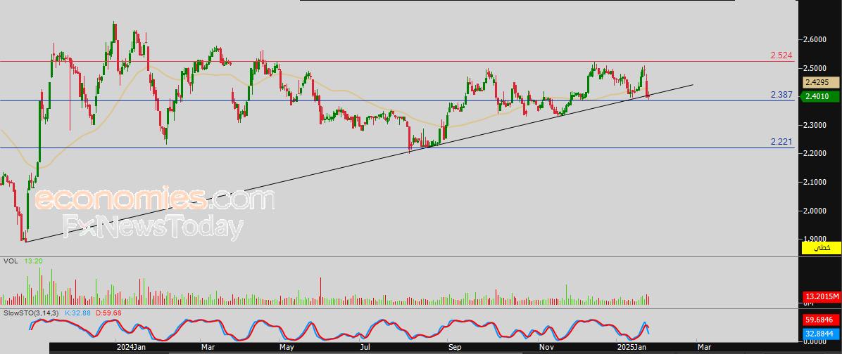 لهذا فتوقعاتنا ترجح عودة صعود سعر السهم خلال تداولاته القادمة، بشرط مهم جداً وهو ثبات مستوى الدعم 2.387 ريال، ليستهدف مستوى المقاومة المهم 2.524 ريال.