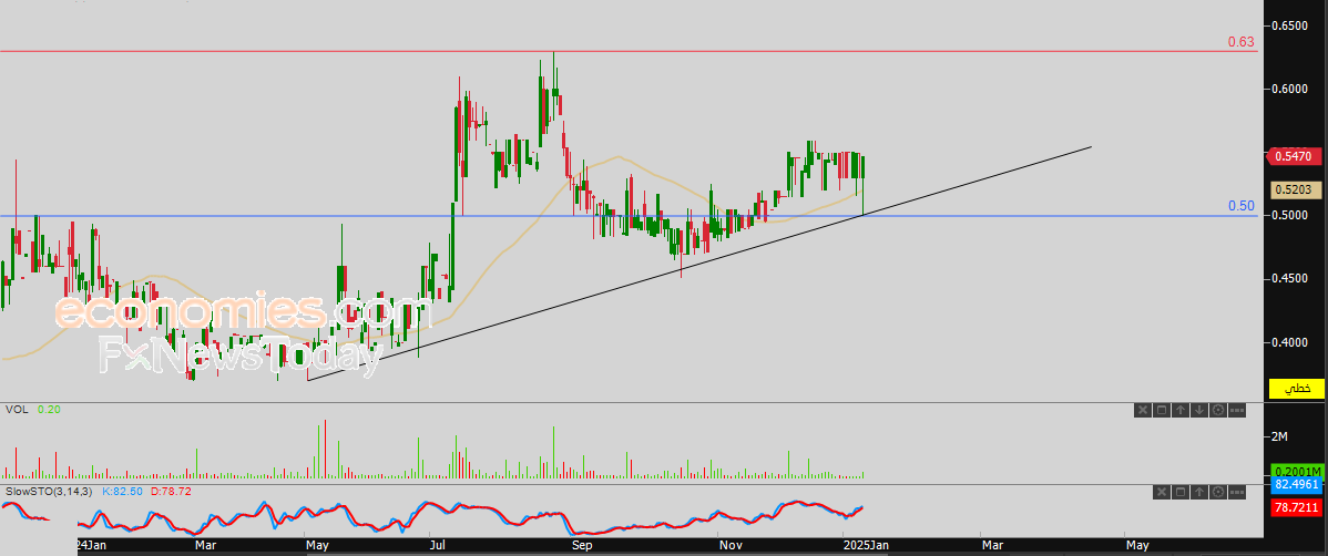 لهذا فتوقعاتنا ترجح عودة صعود سعر السهم خلال تداولاته القادمة، طيلة استقراره اعلى مستوى الدعم 0.50، ليستهدف مستوى المقاومة المحوري 0.63.