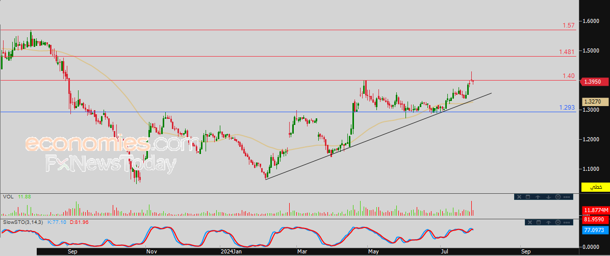 لذلك نحن نرجح عودة صعود سعر السهم خلال تداولاته القادمة، خاصة في حالة اختراقه للمقاومة 1.40، ليستهدف بعدها أولى مستويات المقاومة عند سعر 1.48 ريال.