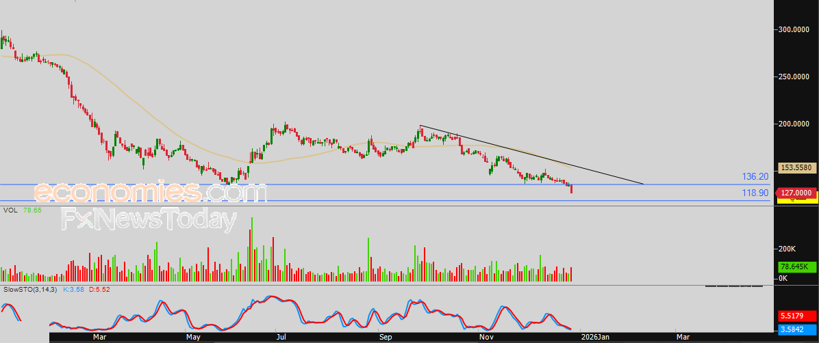 لذلك تشير توقعاتنا إلى هبوط سعر السهم خلال تداولاته القادمة، خاصة طيلة استقراره دون سعر 136.20 ريال، ليستهدف أولى مستويات الدعم عند سعر 118.90 ريال.