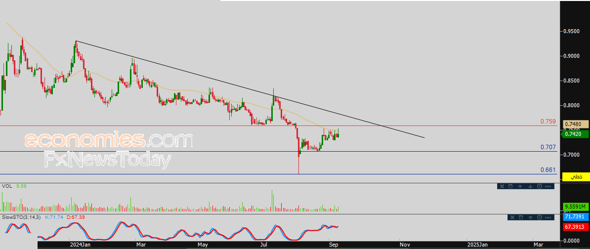 لذلك فتوقعاتنا ترجح عودة هبوط سعر السهم خلال تداولاته القادمة، طيلة ثبات مستوى المقاومة 0.759، ليستهدف أولى مستويات الدعم عند 0.707.