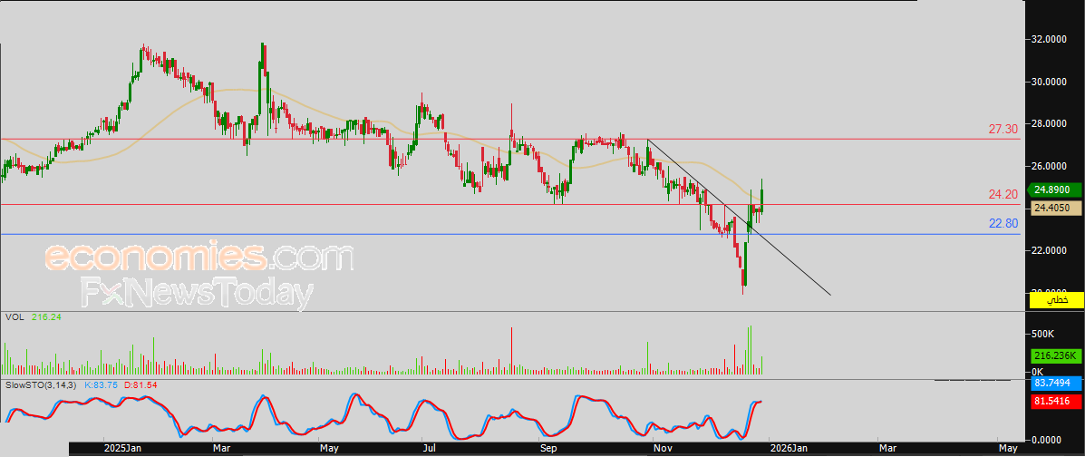 لهذا فتوقعاتنا تشير إلى صعود سعر السهم خلال تداولاته القادمة، خاصة طيلة استقراره أعلى سعر 24.20 ريال، ليستهدف مقاومته التالية عند سعر 27.30 ريال.