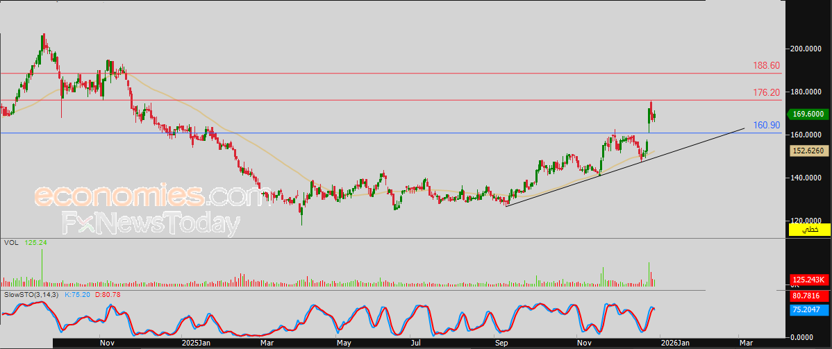 لهذا تشير توقعاتنا إلى صعود سعر السهم خلال تداولاته القادمة، خاصة في حالة اختراقه للمقاومة المذكورة 176.20 ريال، ليستهدف بعدها مقاومته التالية عند سعر 188.60 ريال.