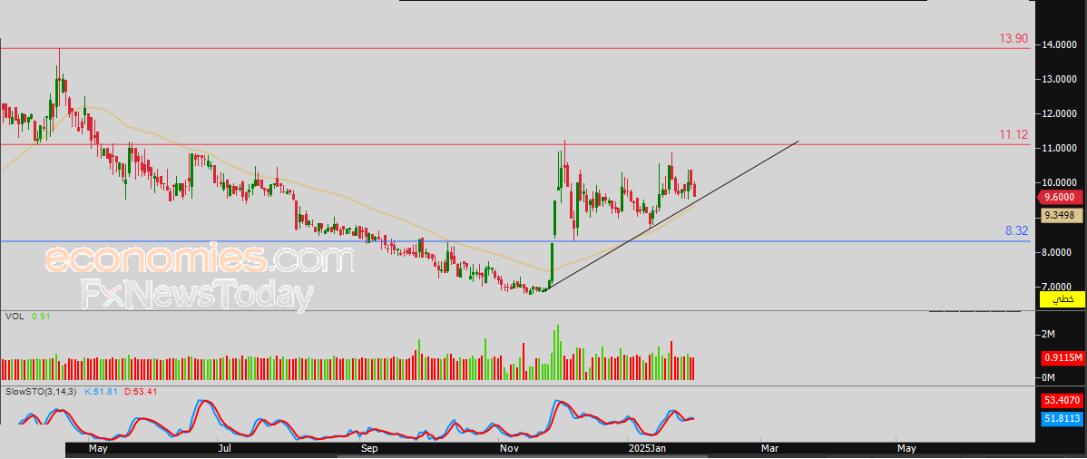 لذلك نحن نرجح عودة صعود سعر السهم خلال تداولاته القادمة، طيلة ثبات مستوى الدعم 8.32 درهم، ليستهدف من جديد مستوى المقاومة المحوري والعنيد 11.12 درهم استعداداً لمهاجمته.