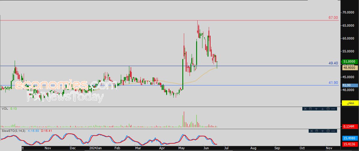 لذلك نحن نتوقع المزيد من الصعود لسعر السهم خلال تداولاته القادمة، بشرط ثبات مستوى الدعم 49.40، ليستهدف مستوى المقاومة المحوري 67.00.